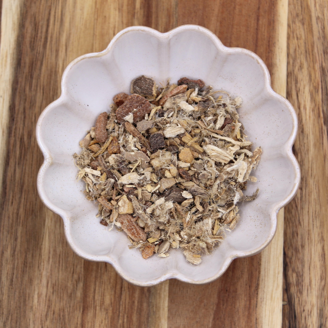 Organic marshmallow, ginger, licorice root, wild cherry, and lemon peel.